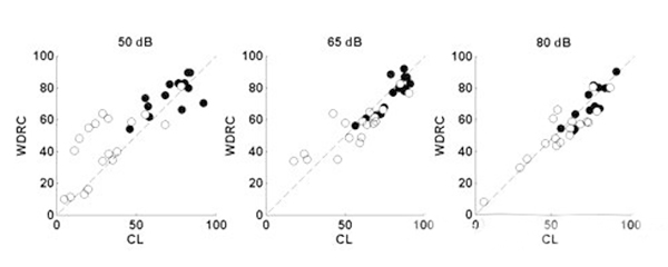 <span style="font-size:16px;"> 重度聽力損失是500Hz、1000Hz、2000Hz和4000Hz平均聽閾在61dB HL和80dB HL之間的聽力損失。重度聽損患者更趨向于:</span></p><p><span style="font-size:16px;"> 1、 聽力損失時間較久;</span></p><p><span style="font-size:16px;"> 2、 有助聽器佩戴史;</span></p><p><span style="font-size:16px;"> 3、 言語分辨率較低;</span></p><p><span style="font-size:16px;"> 4、 噪音環境中交流困難。</span></p><p><span style="font-size:16px;"> (一)重度聽力損失的特點</span></p><p><span style="font-size:16px;"> 60dB HL是單純外毛細胞損傷和內外毛細胞共同損傷的分界點,內毛細胞受損預示著重度聽力損失,這類患者的頻率選擇能力降低,在相關頻率范圍內難以分辨兩種聲音。這是噪聲環境下交流困難的主要原因。</span></p><p><span style="font-size:16px;"> 簡單來說,頻率選擇能力越低,自身降噪能力越差,噪聲下識別信號的能力也就越差。</span></p><p><span style="font-size:16px;"> (二)選擇合適的放大策略</span></p><p><span style="font-size:16px;"> 反饋抑制:這項技術在傳統方法的基礎上有更好的減少嘯叫的效果。</span></p><p><span style="font-size:16px;"> 指向性麥克風:有指向性功能的助聽器可以明顯提高信噪比(SNR)。現在自適應指向性麥克風廣泛地應用于大功率耳背機中。</span></p><p><span style="font-size:16px;"> 對于噪聲下言語交流困難的重度聽力損失患者,選配帶有指向性麥克風的助聽器效果顯著。</span></p><p><span style="font-size:16px;"> 聽力學家對重度聽損人士的指向性麥克風做過獲益度測試,發現平均言語識別能力提升了14%。</span></p><p><span style="font-size:16px;"> 重度聽損患者使用指向性功能時必須保證一定低頻增益,否則他們會感覺聲音不夠洪亮。</span></p><p><span style="font-size:16px;"> 寬動態范圍壓縮線路(WDRC):</span></p><p><span style="font-size:16px;"> 如下圖,白點是重度聽力損失患者的輔音識別得分,黑點是輕度至中度聽損患者的輔音識別得分;每位受試者佩戴四通道的耳背機,驗配采用NAL公式;測試言語聲強度分別為50dB SPL、65dB SPL和80dB SPL;比較WDRC和線性輸出壓縮限制(CL)兩種線路的得分。</span></p><center><span style="font-size:16px;"><img alt="" src="/upfiles/201809170201049787.png" width="600" height="240" /></span></center><p></p><p><span style="font-size:16px;"> 等分位于對角線附近代表兩種處理方式效果相似,得分位于對角線上方表示WDRC線路效果更好,而下方則表示CL線路效果更好。</span></p><p><span style="font-size:16px;"> 對重度聽損患者來說,輸入輕聲和中等聲時WDRC線路比CL線路效果更好;輸入響聲時兩種線路的區別并不大。所以使用WDRC線路可以獲得比CL線路更高的言語識別率。</span></p><p><span style="font-size:16px;"> 壓縮速度:壓縮越深可聽度越高,因為患者可以聽到更寬的聲音響度范圍。</span></p><p><span style="font-size:16px;"> 快反應壓縮(起效和釋放時間很短)可以降低元音(響度較大)增益并提高輔音(響度較小)增益,從而提高可聽度。</span></p><p><span style="font-size:16px;"> 所以理論上來講,對于重度聽損人士,使用多通道助聽器、低壓縮拐點、高壓縮比、音節壓縮,可以最大程度提高驗配效果。</span></p><p><span style="font-size:16px;"> 但壓縮越深就意味著有聲音失真越大,音節壓縮丟失了重要言語信息,導致輔音分辨不清。若要保留這些信息,則需要慢反應壓縮(起效和釋放時間較長)。</span></p><p><span style="font-size:16px;"> 最好的情況是在提高可聽度的同時還保證信號不失真,但目前很難實現,找到二者的平衡點是最佳的選配方案。</span></p><center><span style="font-size:16px;"><img alt="" src="/upfiles/201809170201141216.png" width="440" height="250" /></span></center><p></p><p><span style="font-size:16px;"> 上圖為一組重度聽力損失患者選配快速和慢速WDRC線路的言語識別率對比。</span></p><p><span style="font-size:16px;"> 在輸入聲級為50和65 dB SPL時,快反應壓縮線路的受試者得分明顯比慢反應壓縮線路的受試者差;在80 dB SPL輸入聲級下則并無明顯差別。</span></p><p><span style="font-size:16px;"> 對輕度和中度聽力損失患者來說,無論何種輸入聲級,兩種壓縮方式的得分都沒有明顯差別(并未在圖中顯示)。</span></p><p><span style="font-size:16px;"> 對極重度聽力損失患者來說,可聽度比其他任何信息都重要,快反應壓縮線路效果比慢反應壓縮線路更好。</span></p><p><span style="font-size:16px;"> 綜上所述,在使用多通道WDRC線路助聽器前提下,一定程度的可聽度是必須的,在這個基礎上要追求最低的失真(最低的壓縮比以及最慢的壓縮),才能達到最好的驗配效果。</span></p><p><span style="font-size:16px;"> 我們經常會遇到重度聽力損失患者,應該找到適合他們的驗配策略并提供心理和生理咨詢。</span></p><p><span style="font-size:16px;"> 助聽器選配的效果受到外周及中樞聽覺系統的能力限制,重度感音神經性聽力損失患者很少能在噪音環境中聽清。</span></p><p><span style="font-size:16px;"> 但是,通過仔細的驗配和回訪調試,我們依然可以取得很好的效果。重度聽力損失患者體現了聽覺系統的復雜性,提醒我們僅僅增加增益對提高患者交流能力是遠遠不夠的。</span></p><p><span style="font-size:16px;"> 更多詳情請登錄www.jjrhy.com</span></p>" />