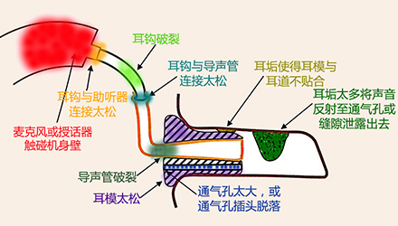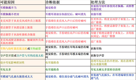 <span style="font-size:16px;"> 嘯叫,一直是引起助聽器使用者不滿的一大原因,也是驗(yàn)配師在助聽器調(diào)試時(shí)最為棘手的難題之一。</span></p><p><span style="font-size:16px;"> 通常,嘯叫分內(nèi)部嘯叫和外部嘯叫。內(nèi)部嘯叫常由內(nèi)部零件故障引起,而外部嘯叫則是與助聽器外殼或耳模,助聽器調(diào)試等有關(guān)。</span></p><p style="text-align: center;"><span style="font-size:16px;"><img src="/upfiles/201810100140556872.jpg" alt="" /><br /></span></p><p><span style="font-size:16px;"> 我們常常說的外部嘯叫是在聲音被麥克風(fēng)拾取、放大器放大、授話器轉(zhuǎn)換后,又從各種縫隙(如外殼與耳道的縫隙、通氣孔)中“跑”出來,又“跑”進(jìn)去,如此反復(fù)多次,使得聲音越來越大,產(chǎn)生“吱吱吱”的惱人嘯叫。</span></p><p><span style="font-size:16px;"> 以助聽器的角度來看,shou話器把聲音授給耳朵聽,當(dāng)用“授”,即授話器。</span></p><p><span style="font-size:16px;"> 接下來將分別針對(duì)定制式(ITE/ITC/CIC)和耳背式(BTE)助聽器的嘯叫問題,跟著產(chǎn)生嘯叫的路徑,一一“攻破”嘯叫難題。注意,這里不說助聽器調(diào)試,只尋嘯叫路徑,并“堵死”嘯叫“通路”,讓進(jìn)入助聽器的聲音“不走回頭路”。</span></p><p><span style="font-size:16px;"> 1、ITE/ITC/CIC助聽器</span></p><p><span style="font-size:16px;"> 先來看看ITE/ITC/CIC助聽器可能發(fā)生嘯叫的路徑。</span></p><p><span style="font-size:16px;"> 圖1里是一個(gè)定制式助聽器佩戴于外耳道內(nèi)的示意圖,各種顏色的字和相應(yīng)顏色的標(biāo)記展示了發(fā)生嘯叫的各種情況。</span></p><center><span style="font-size:16px;"><img alt="" src="/upfiles/201810100142273990.png" width="440" height="250" /></span></center><p></p><p style="text-align: center;"><span style="font-size:16px;">圖1:ITE/ITC/CIC助聽器發(fā)生嘯叫的路徑一覽</span></p><p style="text-align: left;"><span style="font-size:16px;"> 例如,紅色表示“麥克風(fēng)管子脫落”,這屬于助聽器內(nèi)部零件脫落、故障,為內(nèi)部嘯叫。</span></p><p><span style="font-size:16px;"> 橙色表示“外殼佩戴太松”,這屬于外殼不密封的聲音泄露,為外部嘯叫。</span></p><p><span style="font-size:16px;"> 那如何檢查出是這些原因,并對(duì)問題進(jìn)行相應(yīng)處理呢?請(qǐng)對(duì)照表1中的“診斷依據(jù)”和“處理方法”查看。</span></p><center><span style="font-size:16px;"><img alt="" src="/upfiles/201810100142337254.png" width="520" height="250" /></span></center><p></p><p style="text-align: center;"><span style="font-size:16px;">表1:ITE/ITC/CIC助聽器產(chǎn)生嘯叫的可能原因及對(duì)應(yīng)的診斷依據(jù)、處理方法</span></p><p><span style="font-size:16px;"> 例如,當(dāng)發(fā)現(xiàn)“手指堵住麥克風(fēng)入聲口后仍有嘯叫”,可推斷原因是“麥克風(fēng)管子從麥克風(fēng)或外殼上脫落”或“麥克風(fēng)或授話器移動(dòng),觸碰到外殼或其他傳感器”,這時(shí)的處理方法是“送廠維修”。</span></p><p><span style="font-size:16px;"> 2、BTE助聽器</span></p><p><span style="font-size:16px;"> 學(xué)會(huì)了看ITE/ITC/CIC助聽器的一圖一表,再來看看BTE助聽器的嘯叫路徑圖(圖2),以及表2中羅列的可能原因、診斷依據(jù)和處理方法,相信看起來更加輕松、直觀、一目了然。</span></p><center><span style="font-size:16px;"><img alt="" src="/upfiles/201810100142383483.png" width="440" height="250" /></span></center><p></p><p style="text-align: center;"><span style="font-size:16px;">圖2:BTE助聽器發(fā)生嘯叫的路徑一覽</span></p><center><span style="font-size:16px;"><img alt="" src="/upfiles/201810100142449945.png" width="462" height="273" /></span></center><p></p><p style="text-align: center;"><span style="font-size:16px;">表2:BTE助聽器產(chǎn)生嘯叫的可能原因及對(duì)應(yīng)的診斷依據(jù)、處理方法</span></p><p><span style="font-size:16px;"> 更多詳情請(qǐng)登錄www.jjrhy.com。</span></p>" />