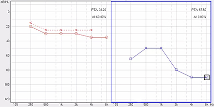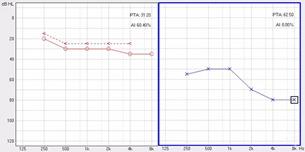<span style="font-size:16px;"> 純音聽閾測試是聽力學所有測試項目中最基本的一項內容,包括氣導(AC)、骨導(BC)、最舒適閾(MCL)與不舒適閾(UCL)測試。測試結果能夠直接反映患者雙耳的聽力損失程度、性質與動態范圍,還能夠間接反映患者的患病位置、病因與助聽后效果。</span></p><p><span style="font-size:16px;"> 一般地,整個檢查控制在10分鐘左右,既能全面做完檢查,又不至患者疲憊而影響主觀反應。</span></p><p><span style="font-size:16px;"> 純音聽閾測試是最考驗聽力學工作者實際工作能力的一項基本內容:</span></p><p><span style="font-size:16px;"> 1、若患者曾長期暴露于噪聲中,且無其它致聾因素,很可能在3 kHz或6 kHz出現明顯的下降,聽力曲線呈現“V”字形,所以除了常規的倍頻程頻率外,還要加測這兩個頻率,否則就犧牲了多通道助聽器的意義;</span></p><p><span style="font-size:16px;"> 除了有過噪聲接觸史的患者需要加測半倍頻程外,涉及聲場助聽聽閾評估、賠償等情況都需要加測半倍頻程。</span></p><p><span style="font-size:16px;"> 耳鳴困擾的患者,注意避免與耳鳴聲類似的純音,若還用純音作為刺激聲,患者就會分辨不清,出現假陽性或假陰性。所以,測試者要換成囀音,既有別于耳鳴聲,又具有頻率特異性。</span></p><p><span style="font-size:16px;"> 2、不舒適閾反映患者對大聲的忍耐力,不舒適閾與氣導的差值能顯示患者的動態范圍,指導驗配師調節助聽器的最大輸出。</span></p><p><span style="font-size:16px;"> 不舒適閾測試頻率是否越多越好呢?非也。測得頻率過多,一會引起患者疲勞或不適,二是沒必要,大多數助聽器的最大輸出是一個整體,不能像調增益和壓縮那樣分通道,所以測多了并無好處,一般測0.5、1、2、4 kHz。</span></p><p><span style="font-size:16px;"> 3、如果兩側聽力有明顯差異,此時就要準備好掩蔽了,分為氣導掩蔽與骨導掩蔽。</span></p><p><span style="font-size:16px;"> (1)氣導掩蔽的判斷有兩個原則,只要符合其中一個原則,就需要重新測差耳氣導。具體做法是:</span></p><p><span style="font-size:16px;"> 測試完雙耳氣導,若發現某一頻率差耳氣導閾值比好耳氣導閾值多40 dB以上就要懷疑有可能是好耳偷聽的,需要給好耳氣導加掩蔽聲;</span></p><p><span style="font-size:16px;"> 測試完雙耳氣導與好耳骨導,若發現某一頻率差耳氣導閾值比好耳骨導閾值多40 dB以上就要懷疑有可能是好耳偷聽的,需要給好耳氣導加掩蔽聲。</span></p><p><span style="font-size:16px;"> 下面為未掩蔽的聽力圖:</span></p><center><span style="font-size:16px;"><img alt="" src="/upfiles/201810160133207570.png" width="440" height="220" /></span></center><p></p><p><span style="font-size:16px;"> 下圖為掩蔽后的左耳真實氣導值:</span></p><center><span style="font-size:16px;"><img alt="" src="/upfiles/201810160133289538.png" width="440" height="220" /></span></center><p></p><p><span style="font-size:16px;"> (2)骨導掩蔽的判斷原則:</span></p><p><span style="font-size:16px;"> 測試完雙耳氣導與好耳骨導,若發現某一頻率差耳氣導閾值比好耳骨導閾值大于等于15 dB就必須予以掩蔽,重測骨導。下圖為右耳氣導加掩蔽后左耳骨導的真實值:</span></p><center><span style="font-size:16px;"><img alt="" src="/upfiles/201810160133368026.png" width="440" height="220" /></span></center><p></p><p><span style="font-size:16px;"> 注意:</span></p><p><span style="font-size:16px;"> 1)掩蔽的規則要按順序適用;</span></p><p><span style="font-size:16px;"> 2)各頻率根據規則決定是否需要加掩蔽;</span></p><p><span style="font-size:16px;"> 3)很少需要掩蔽所有頻率,通常氣導掩蔽頻率不應超三個,骨導掩蔽頻率不應超兩個,否則受試者會疲憊不堪。</span></p><p><span style="font-size:16px;"> 醫院測聽的主要目的是診斷和鑒別聽力損失的性質和程度,驗配中心的主要目的是盡可能地幫助患者選擇并調試好助聽器。</span></p><p><span style="font-size:16px;"> 更多詳情請登錄www.jjrhy.com</span></p>" />