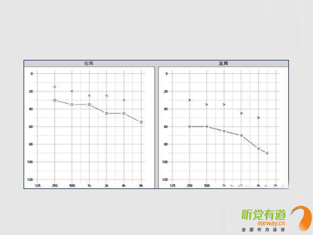 <span style="font-size:16px;"> 什么是純音聽力測試?純音聽力測試為什么說需要遮蔽?什么時候又需要遮蔽呢?帶著這些問題聽覺有道帶大家一起來了解一下相關知識,讓聽力損失的朋友在做聽力檢查的時候更了解這方面的知識,對是否需要驗配助聽器的問題也能得到更好的解決。</span></p><p><span style="font-size:16px;"> 純音聽力測試是現階段臨床常用的聽力學檢查手段,純音聽力測試的精準性,往往會影響到聽力損失用戶驗配助聽器的效果。掩蔽是純音測聽的一個難點,聽覺有道先為大家講解下什么時候需要掩蔽。</span></p><p><span style="font-size:16px;"> 首先,我們需要了解:“什么是掩蔽”?</span></p><p><span style="font-size:16px;"> 掩蔽,簡而言之,即一種聲音由于受另一種聲音的干擾,人耳所感受到的強度減弱或消失的現象稱之為掩蔽。</span></p><p><span style="font-size:16px;"> 舉個例子:</span></p><p><span style="font-size:16px;"> 同樣的一段音樂,單純的環境下(比如安靜的室內)播放,聽者聆聽的清晰度會比較好;而在復雜的環境下(比如菜市場),聽者聆聽的清晰度則會大幅度減弱,這就是掩蔽。</span></p><p><span style="font-size:16px;"> 其次,我們需要了解:“為什么需要掩蔽”?</span></p><p><span style="font-size:16px;"> 純音聽力測試中,有時候存在“影子聽力”:雙耳聽閾相差較大時,出現在測試差耳時,測試信號就很可能在沒有達到其閾值前傳至對側耳蝸,非測試耳先感受到測試聲而做出反應。</span></p><p><span style="font-size:16px;"> 用具體的聽力圖為大家展示下:</span></p><p><span style="font-size:16px;"> </span></p><p><center><span style="font-size:16px;"><img alt="" src="/upfiles/201802050147148790.jpg" width="554" height="279" /></span></center><center><span style="font-size:16px;"><br /></span></center></p><p></p><p><span style="font-size:16px;"> 以上這張聽力圖里面,左右耳聽閾相差比較大,但是整個氣導檢測結果的走向非常接近。</span></p><p><span style="font-size:16px;"> 所以,純音聽閾測試中掩蔽的目的就是為了避免非測試耳的參與(即好耳“偷聽”到差耳處播放的信號聲),盡可能得到測試耳的真實閾值。</span></p><p><span style="font-size:16px;"> 最后,我們要了解:“純音測聽中,需要掩蔽的條件?”</span></p><p><span style="font-size:16px;"> 現在純音聽力計常用的耳機為壓耳式耳機,它的耳間衰減值(IA)在40~70分貝之間。所以,氣導測聽中,掩蔽的條件為:差耳氣導閾值-好耳的骨導閾值≥40dB。</span></p><p><span style="font-size:16px;"> 舉例說明:</span></p><p><span style="font-size:16px;"> 上面的聽力圖中,1000Hz處,左耳氣導值:65dB HL,骨導值:35dB HL;右耳氣導值:35dB HL,骨導值:25dB HL。此時,左耳為差耳,右耳為好耳。</span></p><p><span style="font-size:16px;"> 差耳氣導閾值(65)-好耳的骨導閾值(25)=40dB,滿足條件。此時左耳1000Hz處氣導聽閾測試需要掩蔽,掩蔽聲加在右耳。</span></p><p><span style="font-size:16px;"> 更多詳情請登錄www.jjrhy.com。</span></p>" />