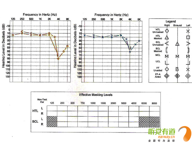 <span style="font-size:16px;"> 首先聽覺有道跟大家解釋一下純音測聽的定義以及臨床意義。純音測聽包括氣導(dǎo)聽閾測試(AC)和骨導(dǎo)聽閾測試(BC),以耳機(jī)及骨導(dǎo)振子給聲,反應(yīng)受試者在安靜環(huán)境下能夠聽到的各個(gè)頻率的最小聲音的聽力級(氣導(dǎo)頻率范圍125-8000Hz,骨導(dǎo)250-4000Hz)。它是目前能準(zhǔn)確反映聽敏度的主觀行為測試方法之一,在臨床上是最基本最重要的聽力檢查方法。</span></p><p><span style="font-size:16px;"><br /></span></p><p style="text-align: center;"><span style="font-size:16px;"><img src="/upfiles/201803010200415958.jpg" align="middle" alt="" /><br /></span></p><p style="text-align: center;"><span style="font-size:16px;"><br /></span></p><p><span style="font-size:16px;"> 先整體看一下聽力圖,它的橫坐標(biāo)是純音的頻率,縱坐標(biāo)表示的是聽力級(單位為db HL),從上往下看數(shù)字是變大的。0表示聽力零級,簡單地說就是科研人員測了很多聽力正常男女的聽力,以他們能聽到的最小聲音作為聽力零級。所以如果你的聽力是正常的話,聽力圖上的閾值曲線應(yīng)該在零附近浮動(dòng),如果你聽力超常,那就在0以上也就是為負(fù)值了。如果你聽力下降,那線就往下走,越往下就說明聽力損失得越多。從生活常識(shí)上理解,所謂聽閾聽閾,閾值越低表示你能聽到越小的聲音,聽力就越好,閾值越高,聽力越差。</span></p><p><span style="font-size:16px;"> 接著說一下聽力圖上的圈圈叉叉代表的意思。叉叉表示左耳的氣導(dǎo)聽閾,圈圈表示右耳氣導(dǎo),開口向左的尖括號(hào)表示左耳骨導(dǎo),開口向右的表示右耳骨導(dǎo)。旁邊的masked表示加掩蔽之后的聽力。</span></p><p><span style="font-size:16px;"> 為什么要加掩蔽呢?舉個(gè)例子:你右耳聽力比左耳好,當(dāng)你左耳給聲強(qiáng)度很大,會(huì)出現(xiàn)你左耳其實(shí)沒聽見但右耳偷聽到了的情況,這時(shí)你就會(huì)反應(yīng),但是這時(shí)你的反應(yīng)能代表左耳的聽閾嗎?肯定比你實(shí)際聽閾要好,所以測聽人員會(huì)在你右耳加噪聲,不讓你右耳偷聽左耳的聲音,這樣測出來的左耳聽力稱掩蔽之后的聽閾。左耳掩蔽之后的氣導(dǎo)用小正方形來表示。同理,右耳掩蔽用小三角形表示。骨導(dǎo)也需要掩蔽。左耳掩蔽后骨導(dǎo)用向左的方括號(hào)表示,右耳用向右的方括號(hào)表示。</span></p><p><span style="font-size:16px;"> 最后我們該如何分析聽力圖。簡單地說,氣導(dǎo)的傳聲路徑包括外中內(nèi)耳以及神經(jīng)部分,骨導(dǎo)只包括內(nèi)耳和神經(jīng)部分,因此出現(xiàn)骨氣導(dǎo)差則表明聽覺通路上有外中耳病變。考慮到各種誤差因素,一般認(rèn)為骨氣導(dǎo)相差10db HL屬于正常范圍。根據(jù)骨氣導(dǎo)的關(guān)系可以將聽力損失分為傳導(dǎo)性聽力損失、感音神經(jīng)性聽力損失以及混合性聽力損失。骨氣導(dǎo)差大于10,且骨導(dǎo)在正常范圍為傳導(dǎo)性聽損;骨氣導(dǎo)一致且都在正常范圍以外為感音神經(jīng)性聽損;骨氣導(dǎo)差大于10,骨導(dǎo)在正常范圍之外為混合性聽損。</span></p><p><span style="font-size:16px;"> 當(dāng)然,如果想進(jìn)一步定位聽力診斷結(jié)果,還需要結(jié)合其他的一些測試如聲導(dǎo)抗、ABR、耳蝸電圖、耳聲發(fā)射、40Hz、影像學(xué)檢查等。</span></p><p><span style="font-size:16px;"> 更多詳情請登錄www.jjrhy.com。</span></p>" />