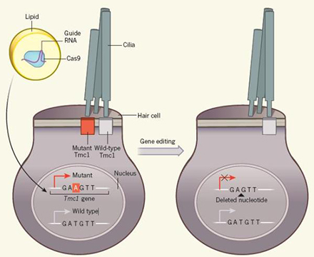 著名鋼琴家貝多芬在32歲時聽力完全喪失,其傷害不言而喻,他在留給其兄弟的遺囑中寫道,“正如落葉凋零,我的生命也已變得空洞?!?lt;/p><p> 盡管貝多芬聽力喪失的原因未知,但很多案例顯示聽力障礙實際都和遺傳DNA突變有關(guān),而目前已知的和聽力障礙相關(guān)的基因有近100個。但迄今為止,幾乎沒有任何治療方法可以減緩或者逆轉(zhuǎn)聽力障礙。貝多芬逝世兩個世紀后的今天,阻止遺傳因素導致聽力障礙的技術(shù)離實現(xiàn)臨床已越來越近。</p><p> 哈佛大學醫(yī)學院耳鼻喉科副教授Zheng-Yi Chen和哈佛大學化學與化學生物學教授、美國博德研究所核心成員David R. Liu共同主導的一項研究在線發(fā)表在在國際著名期刊《自然》(Nature),該團隊用基因編輯技術(shù)治療TMC1突變“貝多芬小鼠”的遺傳性聽力障礙,并取得良好效果。</p><p> 內(nèi)耳是聲音感知的最重要部位,其中內(nèi)耳毛細胞又是人類聽到聲音的關(guān)鍵。其中,TMC1是內(nèi)耳毛細胞中機械力傳導的重要組成部分,TMC1蛋白在內(nèi)耳毛細胞的纖毛上形成通道,當聲波引起纖毛運動時這種通道就會打開,隨后鈣離子進入細胞生成電信號,電信號傳遞到大腦后形成聽覺。</p><p> TMC1發(fā)生了一種顯性負性錯義突變后,會導致內(nèi)耳毛細胞單通道電流水平和鈣滲透率降低,進一步導致感音神經(jīng)性語后聾(語言形成后出現(xiàn)聽力障礙)。通常,TMC1顯性突變患者在10-15歲時會開始逐漸變聾。</p><p> TMC1顯性突變即意味著,一對等位基因中只有一個發(fā)生突變就會導致功能喪失,從而致聾。這也就使得修復顯性突變成了一項精細的任務(wù):必須使突變基因失活,同時還要保留野生型基因。這一對基因的差別只在于其中一個核苷酸的不同。突變的TMC1在原本野生型一個胸腺嘧啶核苷酸T的位置變成了腺嘌呤核苷酸A。</p><p> </p><center><img alt="" src="/upfiles/201903210248378799.png" width="440" height="360" /></center><p></p><p style="text-align: center;"> 基因編輯過程示意圖</p><p> Chen和Liu團隊啟用的是熱門的CRISPR–Cas基因編輯技術(shù)。研究團隊將含有Cas9和RNA的脂滴注入新生TMC1貝多芬小鼠的內(nèi)耳,這種脂滴能和細胞隨后融合。基因編輯后突變基因中腺嘌呤核苷酸A被敲除,從而使該基因失活。但同時保留了野生型基因,保證正常聽力功能實現(xiàn)。</p><p> 研究團隊評估得出,基因編輯過的小鼠中內(nèi)耳毛細胞的存活率更高、聽腦干反應(yīng)閾值更低。此外,聽覺反射也出現(xiàn)改善,基因編輯過的成年貝多芬小鼠在聽到突發(fā)噪音時會表現(xiàn)出驚嚇,然而未經(jīng)基因編輯的小鼠對此毫無反應(yīng)。</p><p> 論文最后指出,這一治療途徑在治療和內(nèi)耳毛細胞功能障礙有關(guān)的常染色體顯性遺傳聽力障礙方面具備潛力,也為反義寡核苷酸療法和RNA干擾療法提供了補充策略。</p><p> 更多詳情請登錄聽覺有道助聽器www.jjrhy.com</p>" />