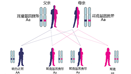 研究表明,約有60%的聽損與遺傳有關(guān),目前已發(fā)現(xiàn)的聽損相關(guān)基因近300個(gè)。在正常人群中約有5%-6%的人至少攜帶一種聽損基因。</p><p> 你可能會(huì)問:</p><p> “哪幾個(gè)聽損基因是最常見的?”</p><p> “我會(huì)不會(huì)攜帶聽損基因?”</p><p> “遺傳的概率有多大?”</p><p> 全國性聾病分子流行病學(xué)調(diào)查結(jié)果顯示:</p><p> 21.01%的聾人攜帶GJB2基因突變,是中國最常見的致聾責(zé)任基因;大前庭導(dǎo)水管綜合征的責(zé)任基因SLC26A4是中國第二高發(fā)的致聾基因,其突變檢出率達(dá)12.7%;4.51%聾人攜帶線粒體12S rRNA基因突變,為藥物性聽損群體的主體。</p><p> 接下來,讓我們一一了解中國人常見的三大聽損基因。</p><p> </p><center><img alt="" src="/upfiles/201904290149522154.png" width="440" height="250" /></center><p></p><p> GJB2基因—最常見的先天性致聾基因</p><p> GJB2基因突變在1997年首次被發(fā)現(xiàn),它在兒童語前聾中占20%,在兒童非綜合征聽損(NSHI)中占40%,是中國人最常見的致聾基因,在亞洲人群中最常見的突變位點(diǎn)為235delC。</p><p> 致聾原因:</p><p> 研究發(fā)現(xiàn),GJB2基因編碼一種稱為“間隙連接的β2蛋白”,這種連接蛋白通過調(diào)控鉀離子水平來維持相鄰細(xì)胞之間的信號傳導(dǎo)分子的轉(zhuǎn)運(yùn)。</p><p> GJB2基因在人類耳蝸中高度表達(dá),形成聽覺的過程中需要將聲波轉(zhuǎn)換為神經(jīng)沖動(dòng),這種轉(zhuǎn)化涉及許多過程,包括維持內(nèi)耳中適當(dāng)水平的鉀離子,突變的GJB2基因會(huì)對耳蝸的正常的聽覺功能造成嚴(yán)重影響。</p><p> 聽力損失表現(xiàn):</p><p> GJB2相關(guān)性聽損一般為先天性,雙耳同時(shí)受累,聽損程度呈對稱性,少數(shù)表現(xiàn)為不對稱性,也有單耳受累報(bào)道。GJB2基因突變造成的聽力損失程度從輕度到集中度不等,大多表現(xiàn)為重度或極重度聽損。</p><p> 遺傳方式:</p><p> GJB2基因突變屬于常染色體隱性遺傳,這也就意味著兩個(gè)攜帶該突變基因的正常父母有概率會(huì)生出一個(gè)患兒。</p><p> 孩子聽損還是不聽損由兩個(gè)等位基因決定(A和a),兩個(gè)等位基因一個(gè)來自父親,一個(gè)來自母親,生育的時(shí)候父母各自隨機(jī)出一個(gè)等位基因“拼成”孩子的一對等位基因。</p><p> 舉個(gè)白話淺顯的例子:</p><p> A是顯性的,a是隱性的,也就是說A是“大哥”,a是“小弟”。</p><p> 有A在的時(shí)候,a聽A的;沒有A的時(shí)候,“小弟”a可能就“胡作非為”了。</p><p> 在這里,GJB2基因突變屬于常染色體隱性遺傳,“大哥”A是聽力正常的,“小弟”a是聽力不正常的。</p><p> 當(dāng)“大哥”A不在,而兩個(gè)“小弟”a聚在一起的時(shí)候,它們就合伙搗亂,把孩子的耳朵“關(guān)上了”。</p><p> </p><center><img alt="" src="/upfiles/20190429014959343.png" width="440" height="250" /></center><p></p><p> 假設(shè)其他聽損相關(guān)基因均正常,不考慮概率極小的自身突變,僅討論GJB2基因:</p><p> 父母中只要有一個(gè)不攜帶該突變基因(AA+AA/Aa/aa)——孩子100%正常;</p><p> 父母均攜帶該突變基因(Aa+Aa)——孩子75%正常;</p><p> 父母中一個(gè)攜帶該突變基因而一個(gè)聽損(Aa+aa)——孩子50%正常;</p><p> 父母均聽損(aa+aa)——孩子0%正常。</p><p> 怎么辦:</p><p> 由于GJB2基因突變造成的聽力損失程度多為重度或極重度,并且聽覺系統(tǒng)的結(jié)構(gòu)基本正常,常提示人工耳蝸植入效果良好。</p><p> 最好的辦法是通過新生兒聽力篩查及聽損基因篩查盡早發(fā)現(xiàn)并確診病因,盡早進(jìn)行人工耳蝸植入,以保證聽覺言語能力的正常發(fā)展。</p><p> SLC26A4基因--大前庭導(dǎo)水管相關(guān)致聾基因</p><p> SLC26A4基因定位于人類染色體7q31,SLC26A4基因和大前庭導(dǎo)水管綜合征相關(guān)突變位點(diǎn)的發(fā)現(xiàn),證實(shí)SLC26A4是大前庭導(dǎo)水管綜合征的責(zé)任基因。</p><p> 我們平時(shí)提到的“一巴掌打聾”、“一跤摔聾”其實(shí)都與SLC26A4基因突變有關(guān),絕大多數(shù)大前庭導(dǎo)水管綜合征都是SLC26A4基因突變?nèi)堑牡湣?lt;/p><p> 致聾原因:</p><p> SLC26A4基因編碼一種叫“Pendrin”的跨膜轉(zhuǎn)運(yùn)蛋白,在機(jī)體離子成分平衡的維持中發(fā)揮重要作用。</p><p> 在內(nèi)耳,Pendrin表達(dá)于內(nèi)淋巴管、內(nèi)淋巴囊、橢圓囊、球囊等處,異變的蛋白將對這些結(jié)構(gòu)的正常生理功能產(chǎn)生影響,引發(fā)聽損。</p><p> </p><center><img alt="" src="/upfiles/201904290150051947.png" width="440" height="250" /></center><p></p><p> 聽力損失表現(xiàn):</p><p> SLC26A4基因突變導(dǎo)致的大前庭導(dǎo)水管綜合征的典型表現(xiàn)為兒童時(shí)期的聽力損失,90%的患者為雙側(cè)性,聽力損失程度不一,可表現(xiàn)為接近正常或重-極重度。</p><p> 病程可為穩(wěn)定性、進(jìn)行性或波動(dòng)性,聽力可逐步下降至全聾;跌倒、撞擊等行為或無外界影響都可能引發(fā)聽力的下降。</p><p> 遺傳方式:</p><p> SLC24A6基因突變屬于常染色體隱性遺傳,其遺傳方式同上面的GJB2基因突變。</p><p> 怎么辦:</p><p> 通過基因篩查可以在輕-中度聽損中篩選出聽力較好的患兒,對其正確指導(dǎo),避免跌倒、撞擊等外界因素,有望保存參與聽力,使患者適應(yīng)正常教育環(huán)境和社會(huì)。</p><p> 有殘余聽力的病人可佩戴助聽器,聽力損失達(dá)到重度