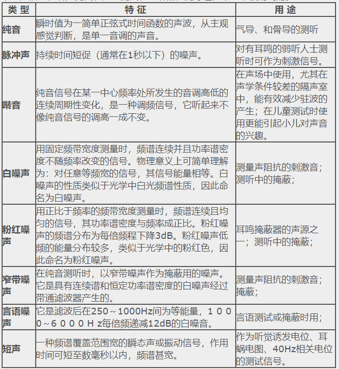 1. 描述聲波的常見物理量</p><p> 1)頻率:單位時間內物體振動的次數(次/秒),用Hz表示;</p><p> 2)強度和振幅:振幅是描述物體振動時傳遞能量的大小,單位是分貝dB;</p><p> 3)分貝:人耳的聽聲范圍太大,引起聽閾的最小聲強與引起痛覺的最小聲強相差近100萬倍,不易計數,因此以某一絕對聲強為基準(20μPa),將聲強的絕對值轉換為與該基準聲強的比值(聲強的級),再取以10為底的對數,最終計數單位變成了貝爾(Bell),為了更細的分級,現在普遍采用1/10B,即分貝(dB)為計數單位。</p><p> </p><center><img alt="" src="/upfiles/201906100126248309.png" width="423" height="154" /></center><p></p><p style="text-align: center;">音波示意圖</p><p style="text-align: left;"> 4)相位:指聲源相對于聽者的方向或位置,當頻率相同的聲音同時到達某點時,如果相位相同,其結果是使聲音顯得更響;當聲音一前一后分別到達時,相位出現部分抵消,其結果是使聲音顯得更輕,相位是確定聲源位置的依據;</p><p> 5)聲壓級(SPL):是用對數級的辦法來表示聲壓的相對大小,單位是dB SPL。計算公式為Lp(SPL)=20lg(P/P0),P0為基準聲壓,在空氣中取人耳1000Hz處能聽到的最小聲壓20μPa。</p><p> 2. 聽力學中常用的聲音信號</p><p> 下列聲信號在聽力測試、聲場測試、助聽器檢測等過程中經常被用到的。</p><p> </p><center><img alt="" src="/upfiles/201906100126317113.png" width="554" height="600" /></center><p></p><p> 更多詳情請登錄聽覺有道助聽器www.jjrhy.com</p>" />