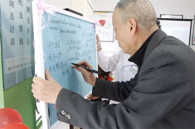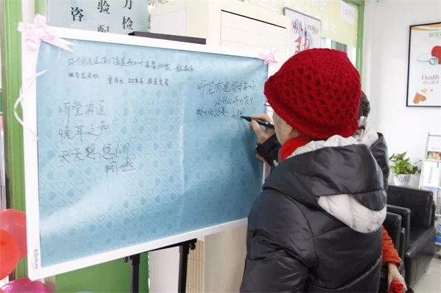 <span style="font-size:16px;"> 2017年12月8日,聽覺有道成都南門服務(wù)中心(原悅耳聽覺成都南門中心)20周歲啦!</span></p><p style="text-align: center;"><span style="font-size:16px;"> </span></p><center><img src="/upfiles/201801230505336847.jpg" alt="" /><br /></center><p></p><p style="text-align: center;"><span style="font-size:16px;"> ▲ 門店驗(yàn)配師與新老用戶大合影</span></p><p style="text-align: center;"><span style="font-size:16px;"> </span></p><center><img src="/upfiles/201801230505391017.jpg" alt="" /><br /></center><p></p><p style="text-align: center;"><span style="font-size:16px;"> ▲ 用戶到店簽到</span></p><p style="text-align: center;"><span style="font-size:16px;"> </span></p><center><img src="/upfiles/201801230505511814.jpg" alt="" /><br /></center><p></p><p style="text-align: center;"><span style="font-size:16px;"> ▲ 用戶陸續(xù)到店入座</span></p><p style="text-align: center;"><span style="font-size:16px;"> </span></p><center><img src="/upfiles/201801230506279812.jpg" alt="" /><br /></center><p></p><p style="text-align: center;"><span style="font-size:16px;"> ▲ 為用戶們準(zhǔn)備的點(diǎn)心和水果</span></p><p style="text-align: center;"><span style="font-size:16px;"> </span></p><center><img src="/upfiles/201801230506592453.jpg" alt="" /><br /></center><p></p><p style="text-align: center;"><span style="font-size:16px;"> ▲ 為用戶準(zhǔn)備的精美禮品</span></p><p style="text-align: center;"><span style="font-size:16px;"> </span></p><center><img src="/upfiles/201801230507068624.jpg" alt="" /><br /></center><p></p><p style="text-align: center;"><span style="font-size:16px;"> ▲ 專業(yè)培訓(xùn)師王斌為用戶們講課</span></p><p style="text-align: center;"><span style="font-size:16px;"><br /></span></p><p style="text-align: center;"><span style="font-size:16px;"> 此次課程內(nèi)容主要圍繞:“聆聽技巧指導(dǎo)”和“聽力損失預(yù)防”和展開。</span></p><center><img src="/upfiles/201801230507144214.jpg" alt="" /><br /></center><p></p><p style="text-align: center;"><span style="font-size:16px;"> ▲ 王斌老師與用戶親切交談</span></p><p style="text-align: center;"><span style="font-size:16px;"> </span></p><center><img src="/upfiles/201801230507214663.jpg" alt="" /><br /></center><p></p><p style="text-align: center;"><span style="font-size:16px;"> ▲ 培訓(xùn)師王斌、店長王蕾與用戶合影留念</span></p><p style="text-align: center;"><span style="font-size:16px;"><br /></span></p><p style="text-align: center;"><span style="font-size:16px;"> 合影留念的這位用戶跟培訓(xùn)師王斌可謂是緣分不淺~她和培訓(xùn)師王斌的母親是多年的老同事,多年未見今日卻在此重逢!情,讓我們聚于此。</span></p><p style="text-align: center;"><span style="font-size:16px;"> </span></p><center><img src="/upfiles/201801230507285900.jpg" alt="" /><br /></center><p></p><p style="text-align: center;"><span style="font-size:16px;"> ▲ 用戶與驗(yàn)配師朱曉軍合影留念</span></p><p style="text-align: center;"><span style="font-size:16px;"> </span></p><center><img src="/upfiles/201801230507383932.jpg" alt="" /><br /></center><p></p><p style="text-align: center;"><span style="font-size:16px;"> ▲ 用戶與店長王蕾合影留念</span></p><p style="text-align: center;"><span style="font-size:16px;"> </span></p><center><img src="/upfiles/201801230508077287.jpg" alt="" /><br /></center><p></p><p style="text-align: center;"><span style="font-size:16px;"> ▲ 用戶與驗(yàn)配師們合影留念</span></p><p style="text-align: center;"><span style="font-size:16px;"><br /></span></p><p style="text-align: center;"><span style="font-size:16px;"> 點(diǎn)蠟燭、唱生日歌、切蛋糕環(huán)節(jié)</span></p><p style="text-align: center;"><br /></p><center><img src="/upfiles/20180123050814975.jpg" alt="" /><br /></center><p></p><p style="text-align: center;"><span style="font-size:16px;"> ▲ 店長王蕾親自為用戶分發(fā)蛋糕</span></p><p style="text-align: center;"><span style="font-size:16px;"><br /></span></p><p style="text-align: center;"><span style="font-size:16px;"> 用戶為南門服務(wù)中心送上祝福</span></p><p style="text-align: center;"><br /></p><center><img src="/upfiles/201801230508271731.jpg" alt="" /><br /></center><p></p><p style="text-align: center;"><span style="font-size:16px;"> </span></p><center><img src="/upfiles/201801230508342844.jpg" alt="" /><br /></center><p></p><p style="text-align: center;"><span style="font-size:16px;"> </span></p><center><img src="/upfiles/201801230508426099.jpg" alt="" /><br /></center><p></p><p style="text-align: center;"><span style="font-size:16px;"> </span></p><center><img src="/upfiles/201801230508483483.jpg" alt="" /><br /></center><p></p><p style="text-align: center;"><span style="font-size:16px;"> </span></p><center><img src="/upfiles/201801230508542561.jpg" alt="" /><br /></center><p></p><p style="text-align: center;"><span style="font-size:16px;"> </span></p><center><img src="/upfiles/201801230508593450.jpg" alt="" /><br /></center><p></p><p style="text-align: center;"><span style="font-size:16px;"> </span></p><center><img src="/upfiles/201801230509041756.jpg" alt="" /><br /></center><p></p><p style="text-align: center;"><span style="font-size:16px;"> </span></p><center><img src="/upfiles/2018012305091028.jpg" alt="" /><br /></center><p></p><p style="text-align: center;"><span style="font-size:16px;"> </span></p><center><img src="/upfiles/201801230509159023.jpg" alt="" /><br /></center><p></p><p style="text-align: center;"><span style="font-size:16px;"> ▲ 用戶滿滿的祝福讓我們很感動</span></p><p style="text-align: center;"><span style="font-size:16px;"><br /></span></p><p style="text-align: center;"><span style="font-size:16px;"> 從悅耳聽覺到聽覺有道,感謝您陪伴了我們20年。有