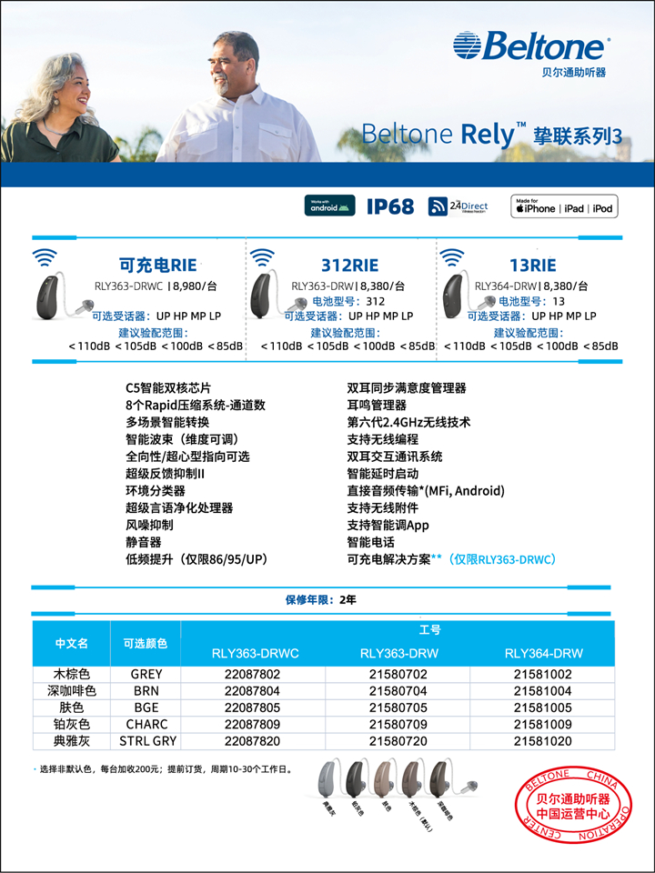 貝爾通助聽(tīng)器 摯聯(lián)系列RLY3