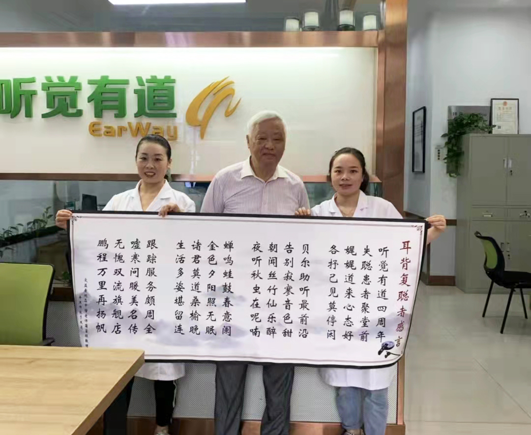 <span style="white-space:pre"> </span>辛丑年仲秋,聽覺有道雙流旗艦店四周年慶將至,劉在中老先生有感而發(fā),作詩一首,以表對(duì)驗(yàn)配師服務(wù)工作的認(rèn)可。<br /><br /> 時(shí)逢大雨,劉老冒雨前來贈(zèng)送字畫,令人感動(dòng)。<br /><br /> 劉老對(duì)貝爾通助聽器給予了極大的評(píng)價(jià):“貝爾助聽最前沿,告別寂寥音色甜。”<br /><br /> 講述佩戴助聽器之后的感受,劉老寫道:“朝聞絲竹仙樂醉,夜聽秋蟲在呢喃。”<br /><br /> 對(duì)其他聽力不好的老年朋友,劉老詩中勸導(dǎo):“諸君莫道桑榆晚,生活多姿堪留連。”<br /></span><p><span style="font-size:16px;"> 對(duì)聽覺有道雙流旗艦店,劉老更是不吝贊詞:“跟蹤服務(wù)頗周全,噓寒問暖美名傳。無愧雙流旗艦店,鵬程萬里再揚(yáng)帆。”</span></p><p style="text-align: center;"><span style="font-size:16px;"><img src="/upfiles/202109150412005668.jpg" width="640" alt="" /> <img src="/upfiles/202109150412002603.jpg" width="640" alt="" /> <img src="/upfiles/202109150412001731.jpg" width="640" alt="" /><br /></span></p><p style="text-align: center;"><br /></p>" />